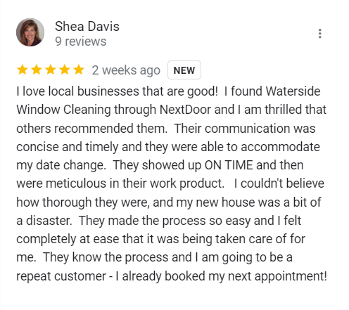 Waterside Window Cleaning did an amazing job! My windows have never looked better. We'll definitely use their services again.